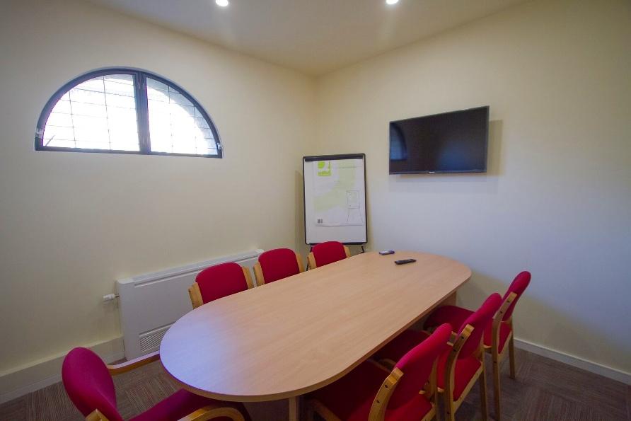 A slightly smaller meeting room in the Western Range. This can be configured as a large board room with tables seating up to 18 people or the tables can be stowed away and then the room seats up to 35 people. The base cost for hiring this room is £120 for one session or £180 for two sessions and that includes the first 10 guests. If booking for larger numbers the price increases – please see our prices from January 2025.